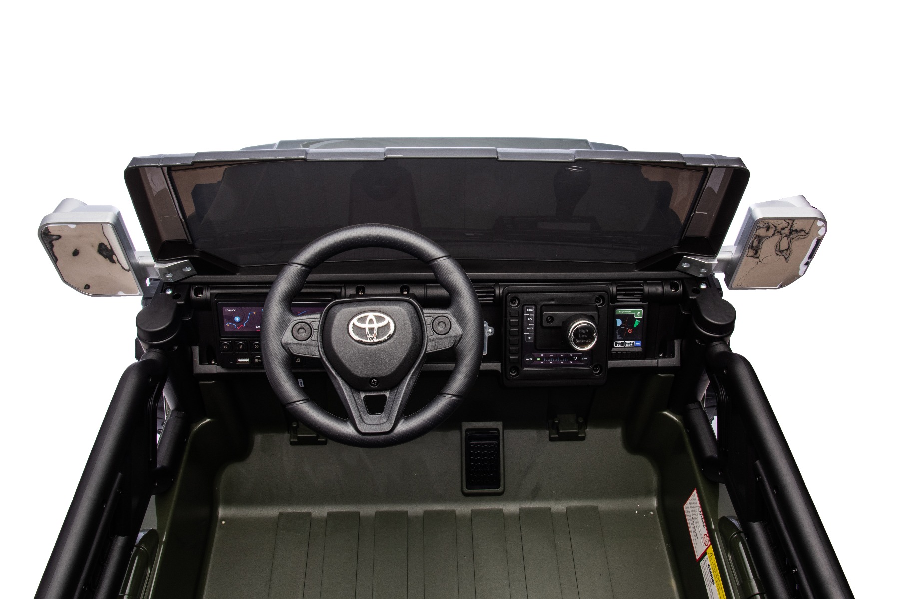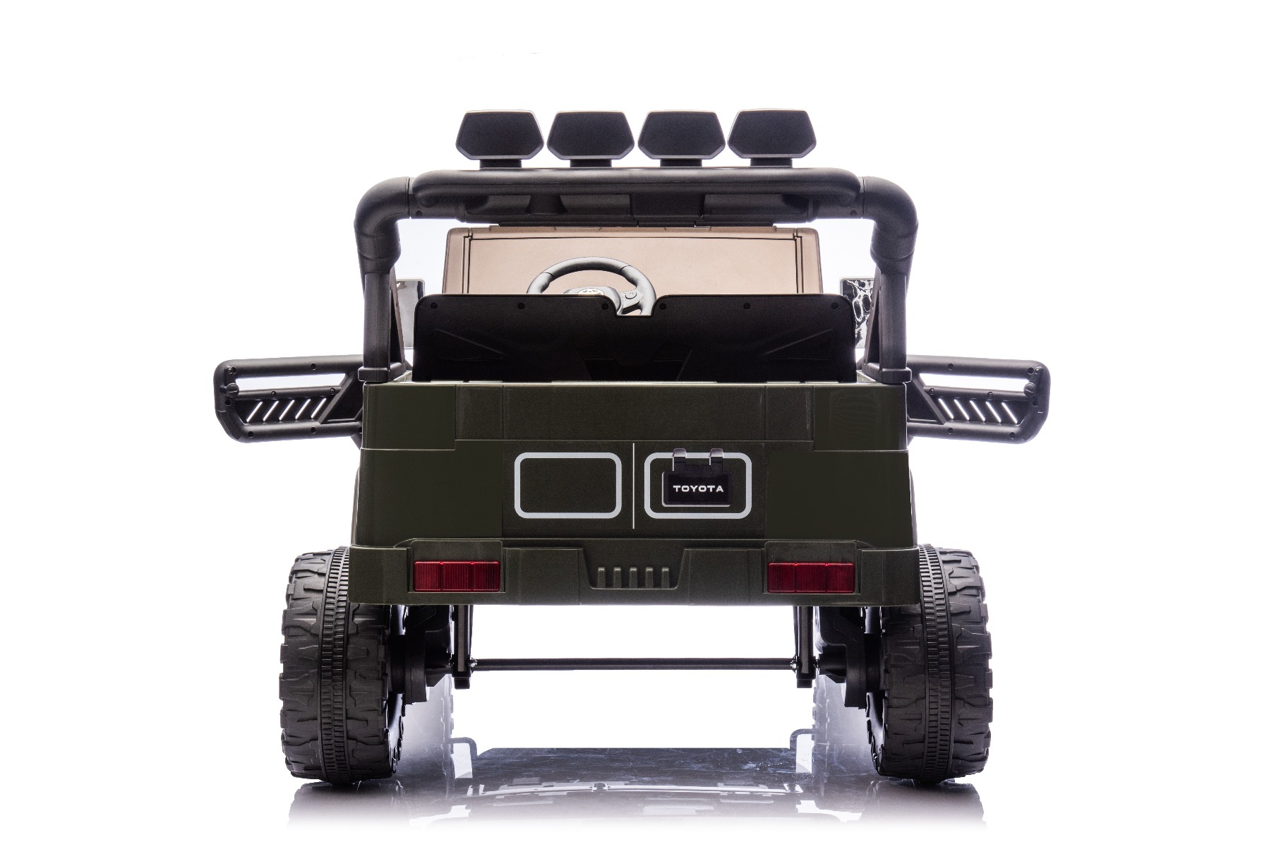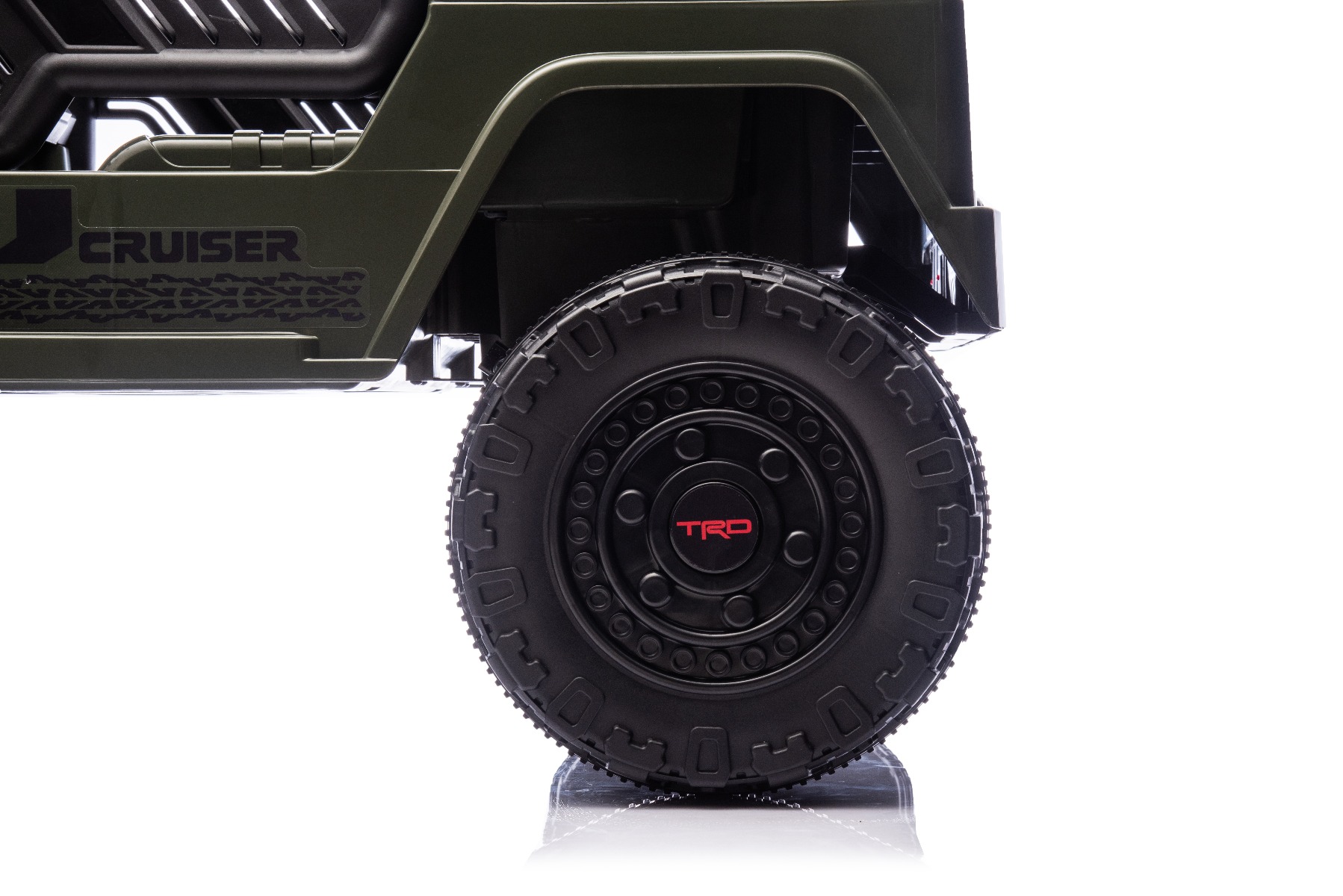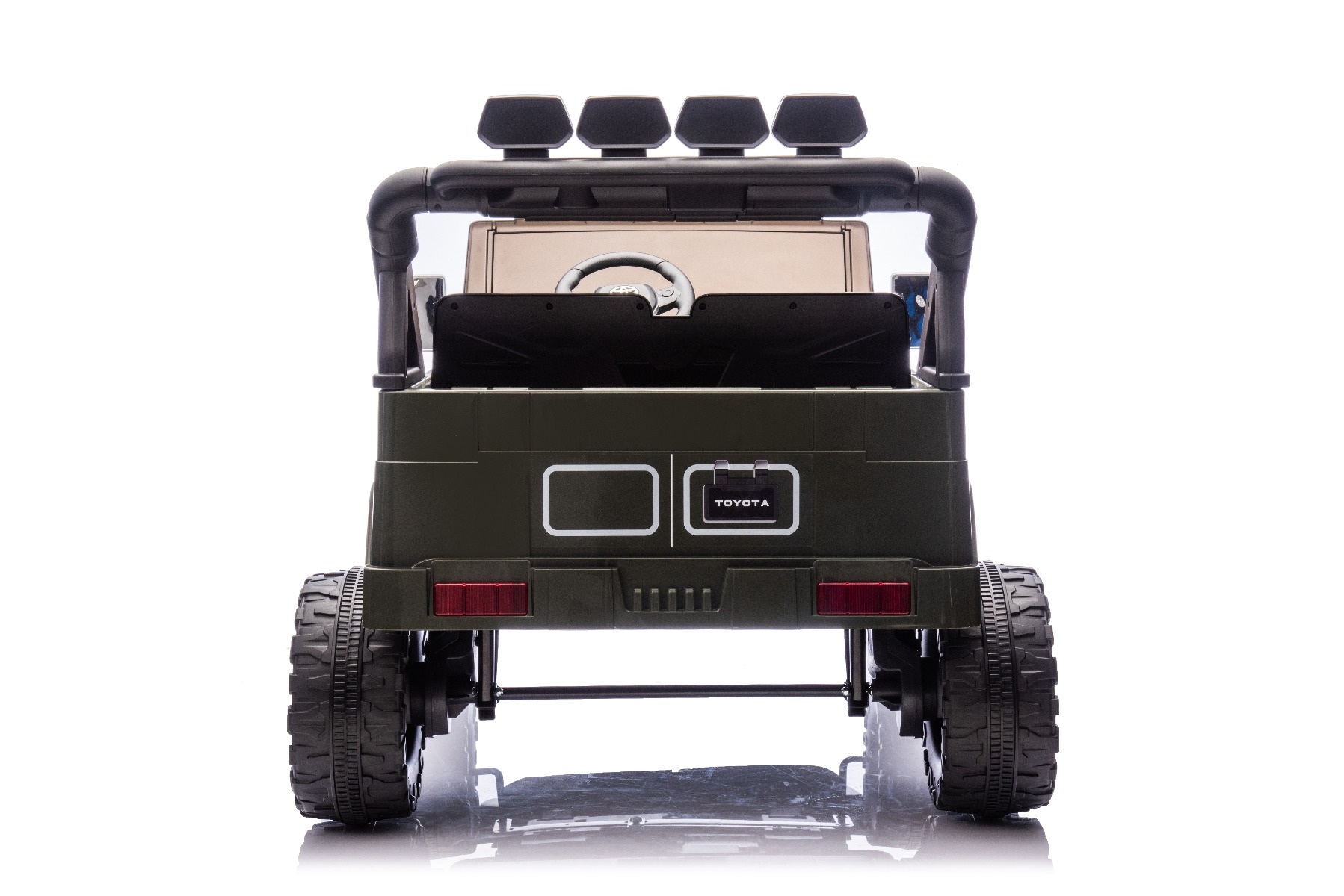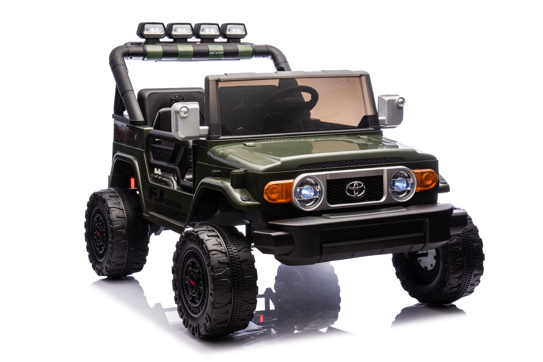 Mașinuță electrică de jucărie Toyota FJ Cruiser XXL cu tracțiune 4×4, autorizată (cu două locuri), verde, baterie litiu portabilă, șasiu înalt, două locuri, punte spate cu suspensie, telecomandă 2,4 GHz, player MP3 cu Bluetooth, lumini LED