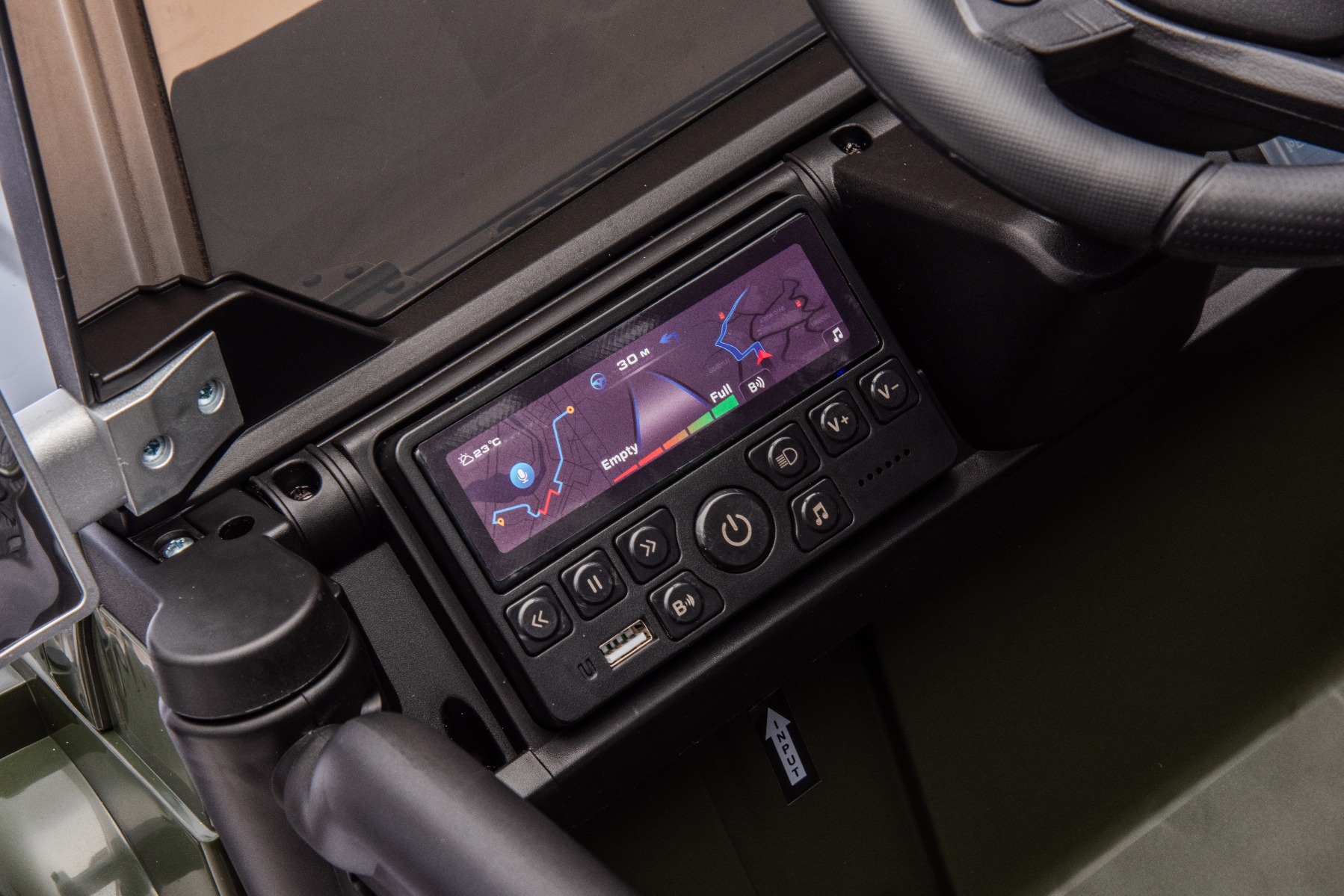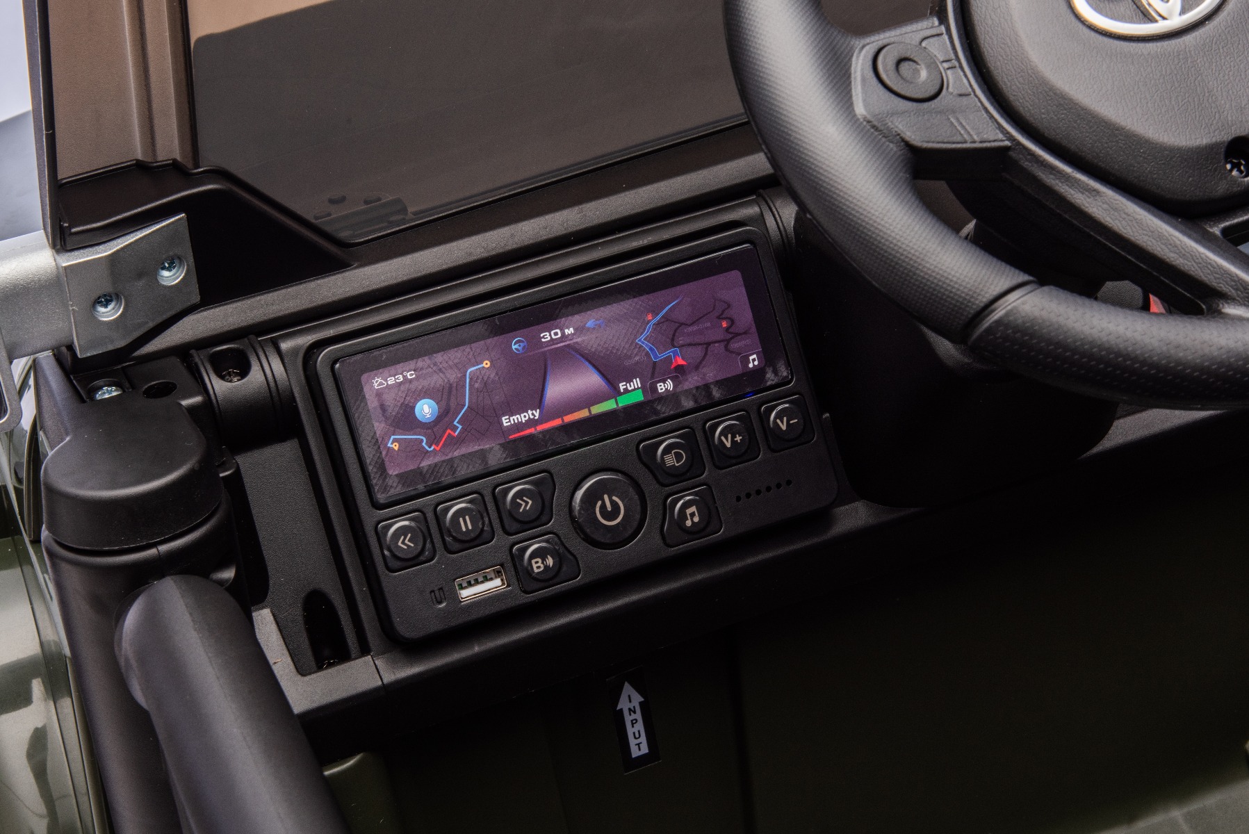 • Potrivit pentru doi copii • Ax spate cu suspensie • Baterie litiu • Propulsiune 4×4 cu motoare de 55W • Bluetooth pe player MP3