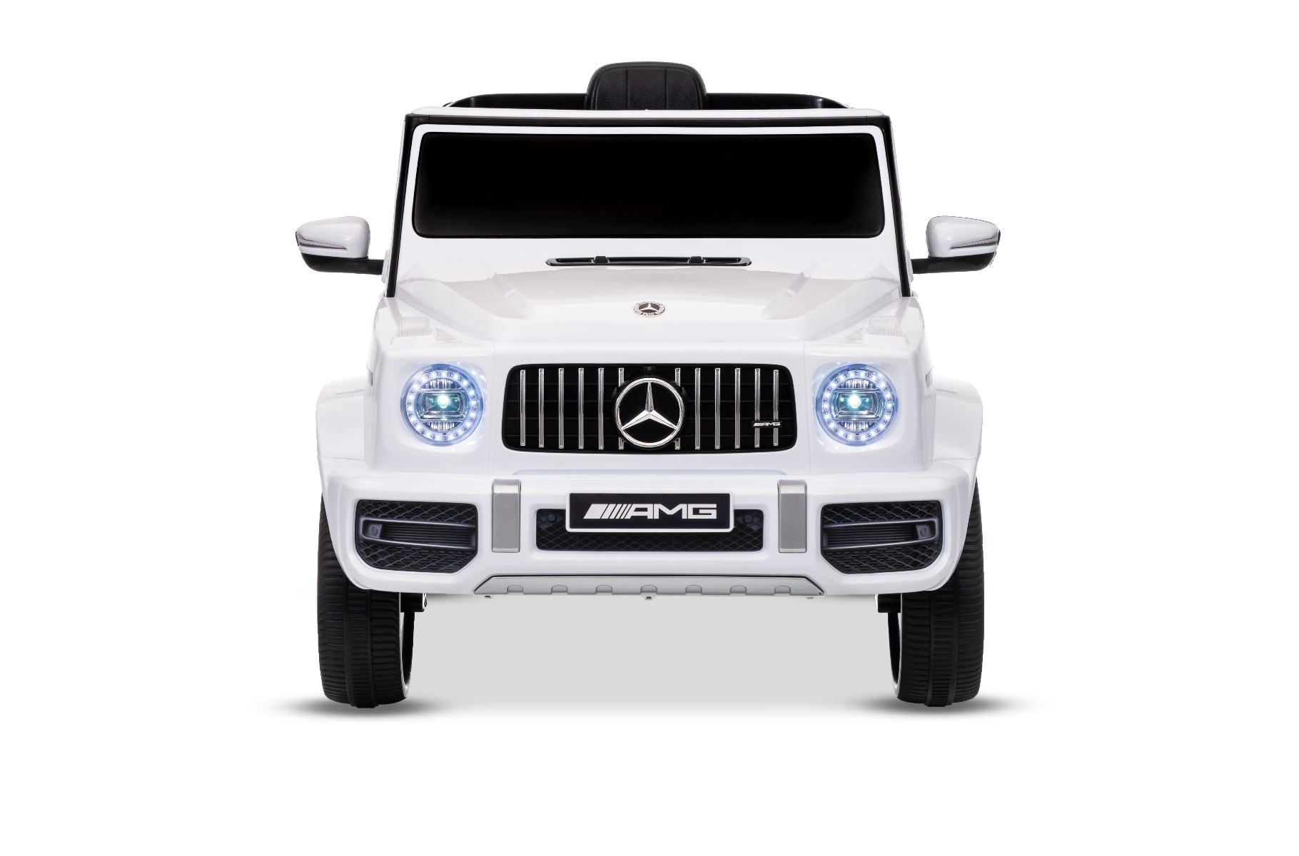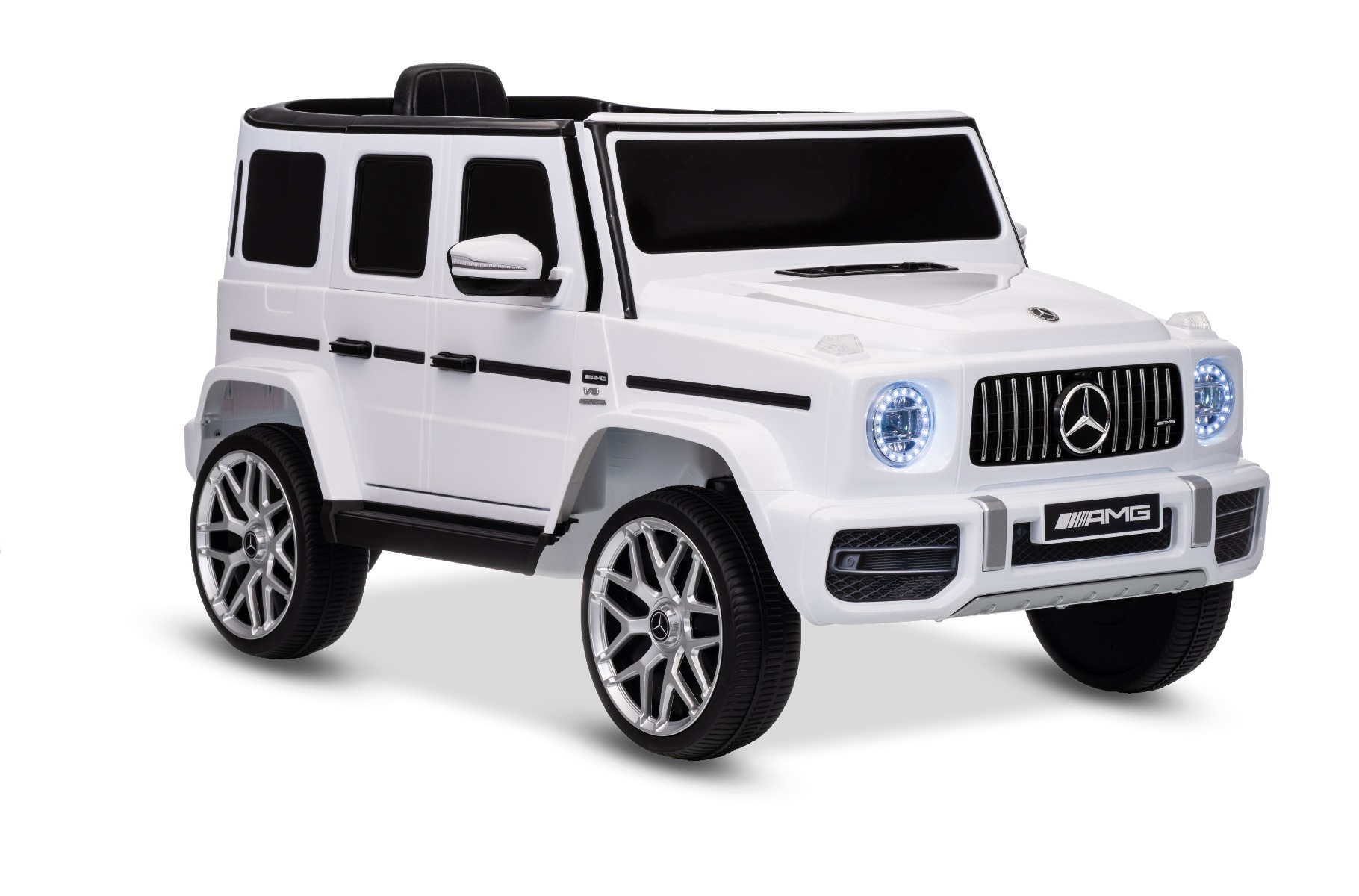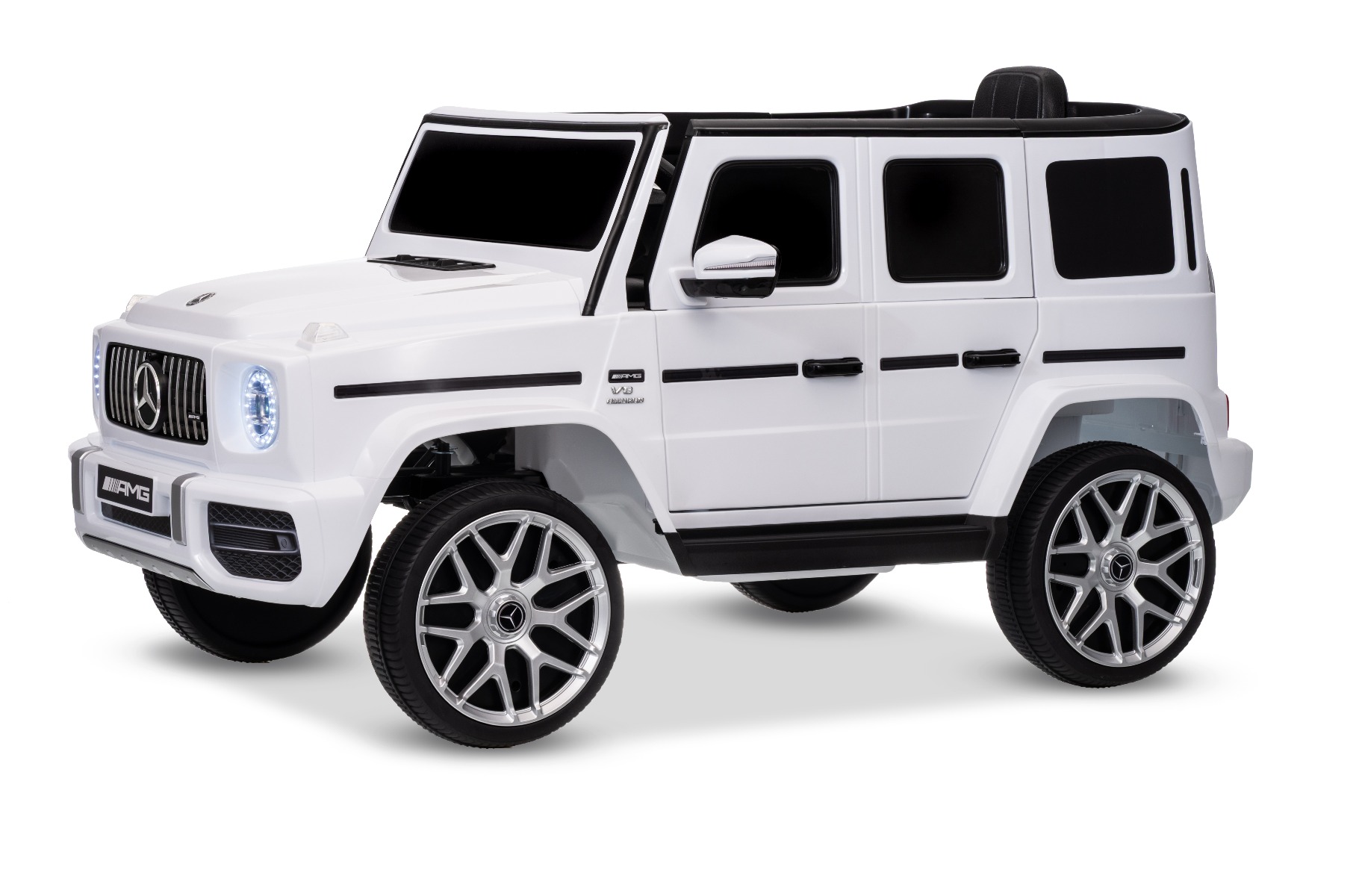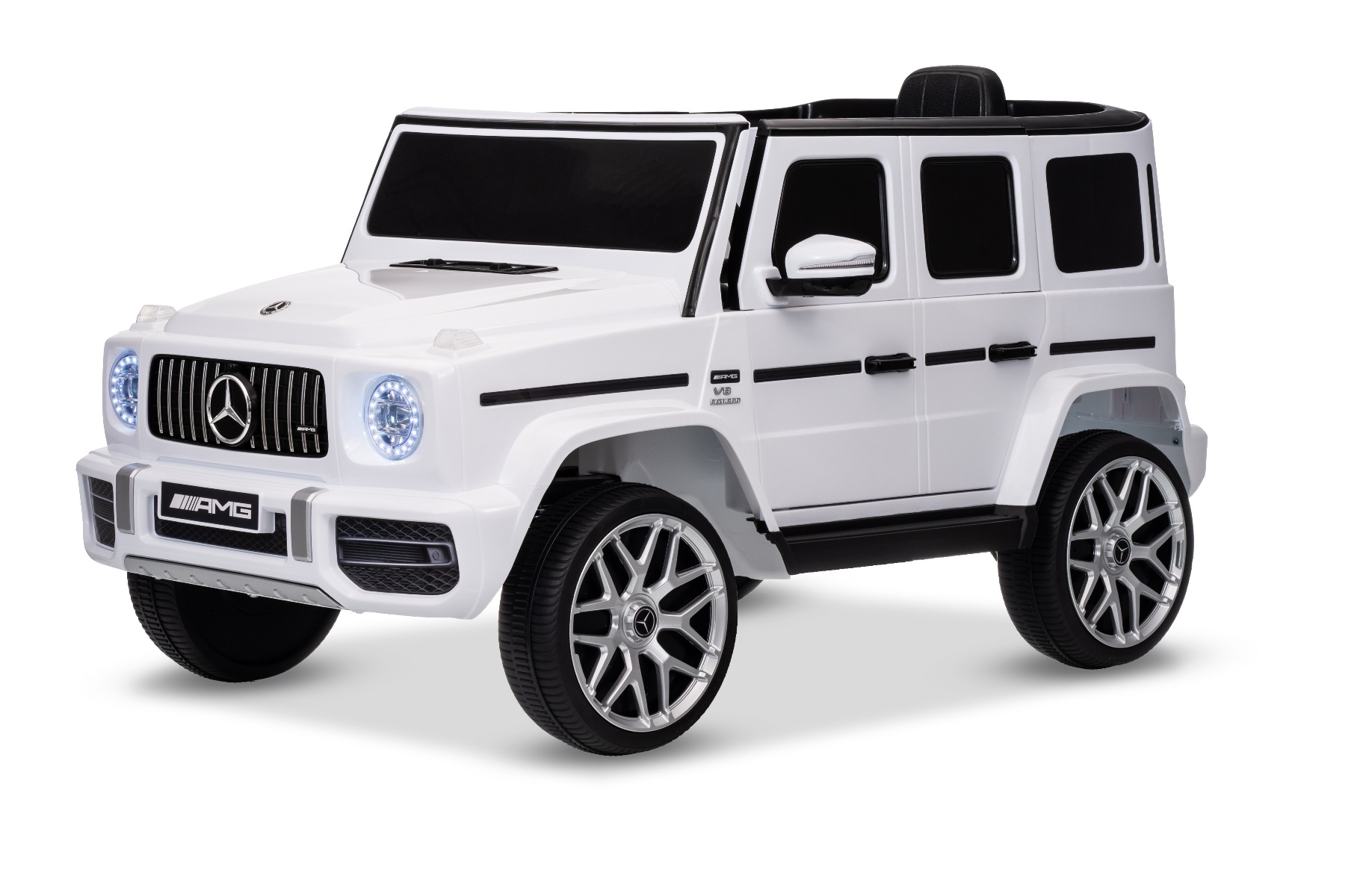 Mașinuță electrică Mercedes G63 12V, alb, scaun individual, suspensii față/spate, baterie litiu, telecomandă 2.4 GHz, 2XMOTOR, USB, Bluetooth, licență ORIGINALĂ