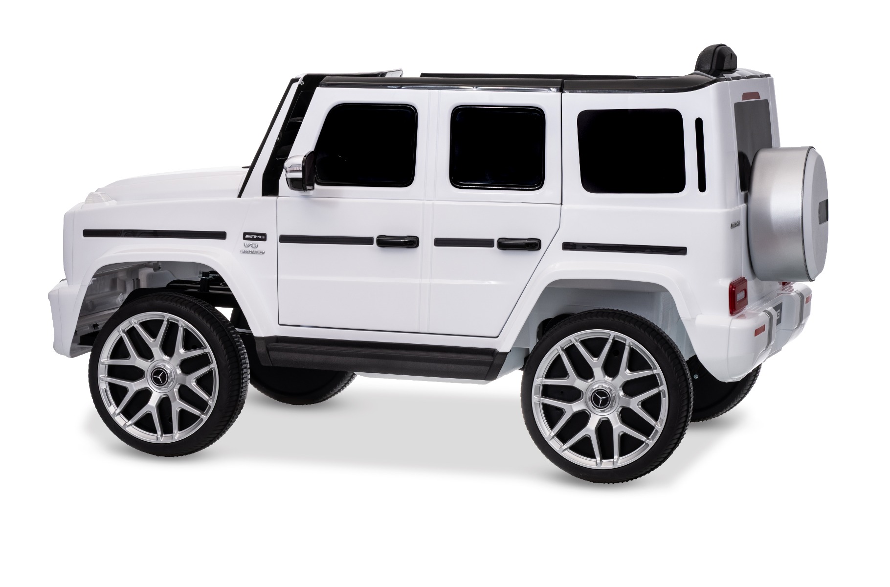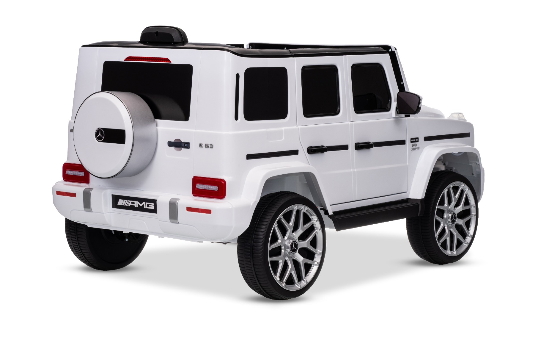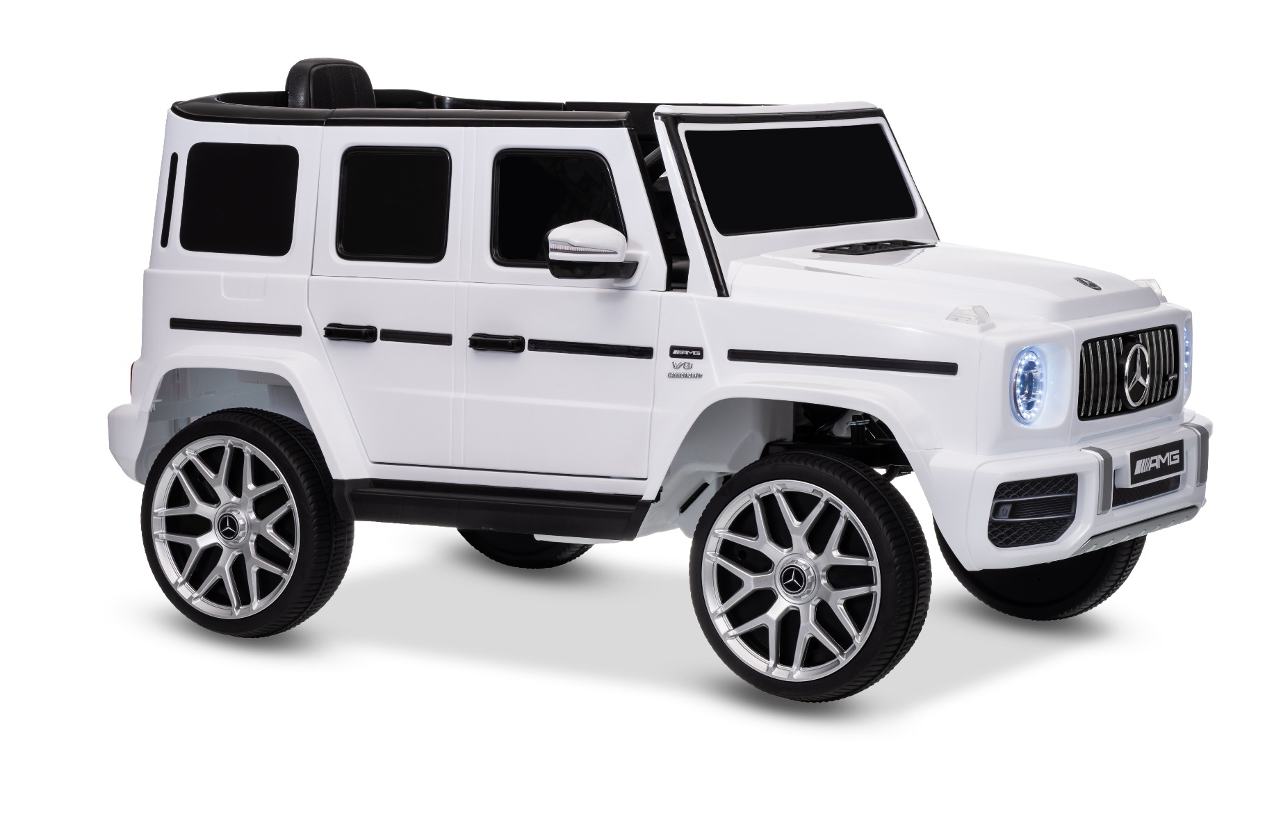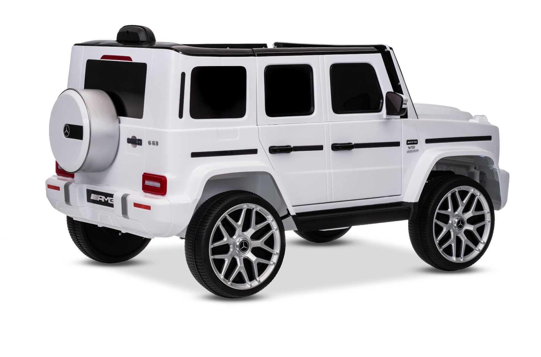 Mașinuță electrică Mercedes G63 12V, alb, scaun individual, suspensii față/spate, baterie litiu, telecomandă 2.4 GHz, 2XMOTOR, USB, Bluetooth, licență ORIGINALĂ