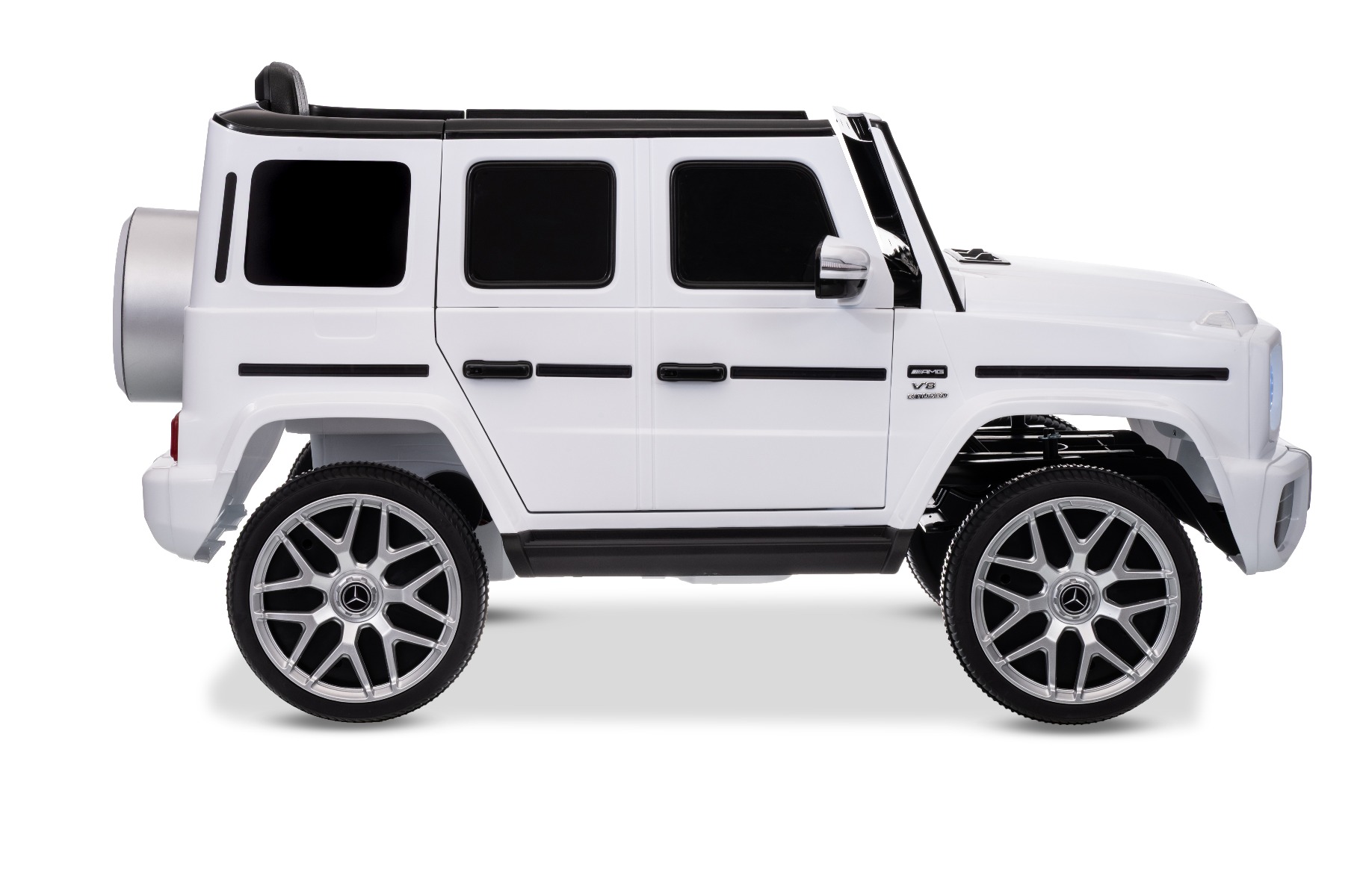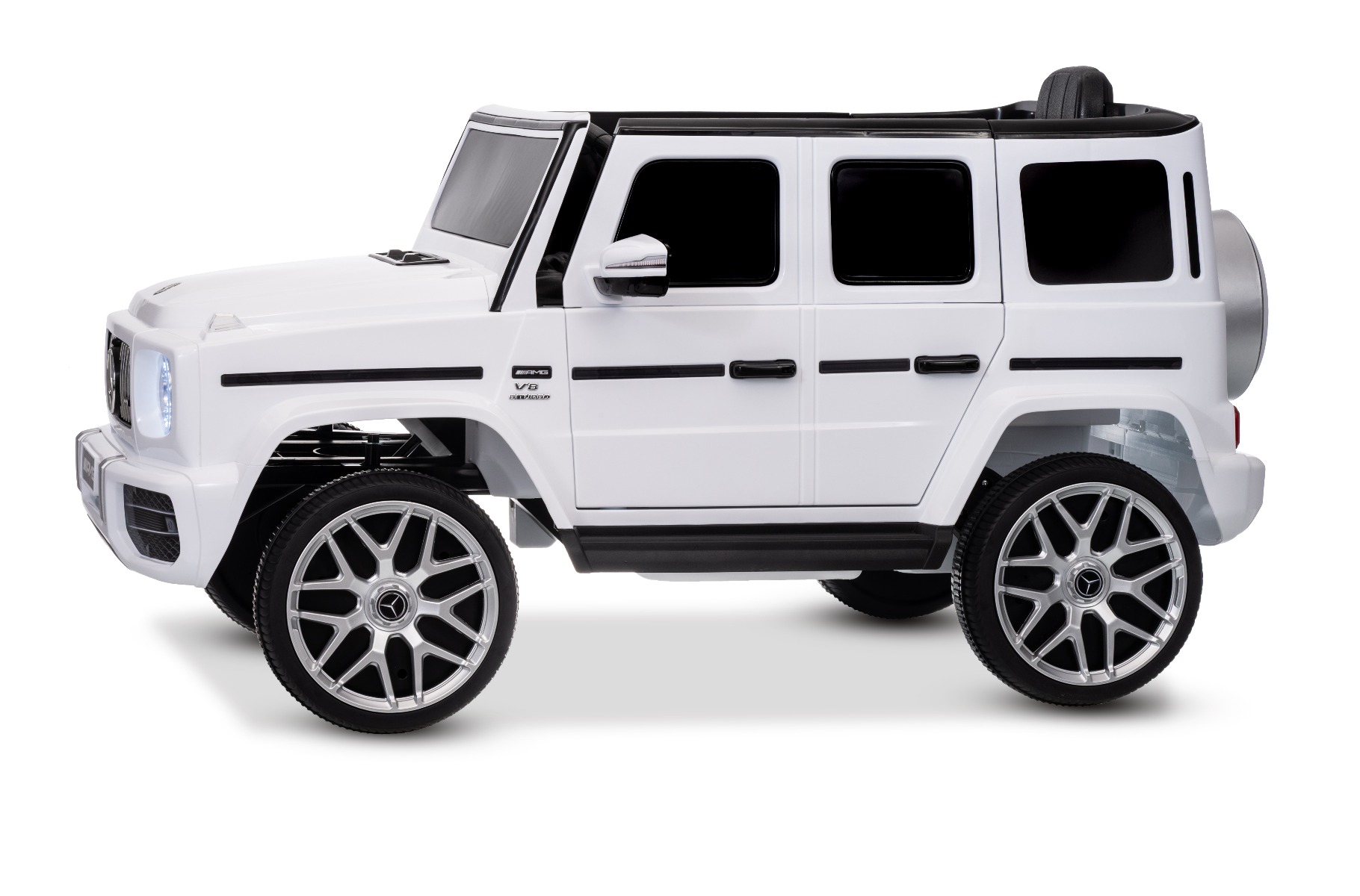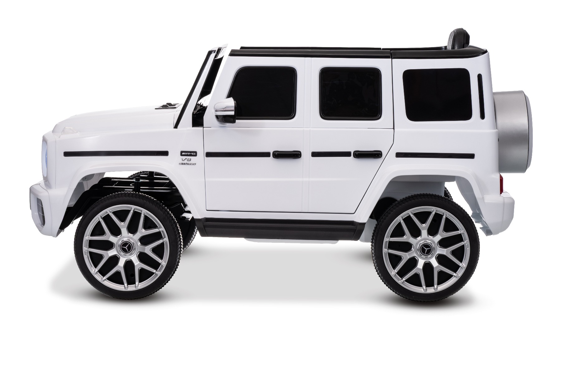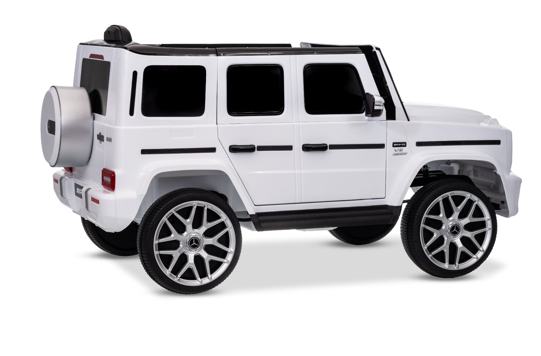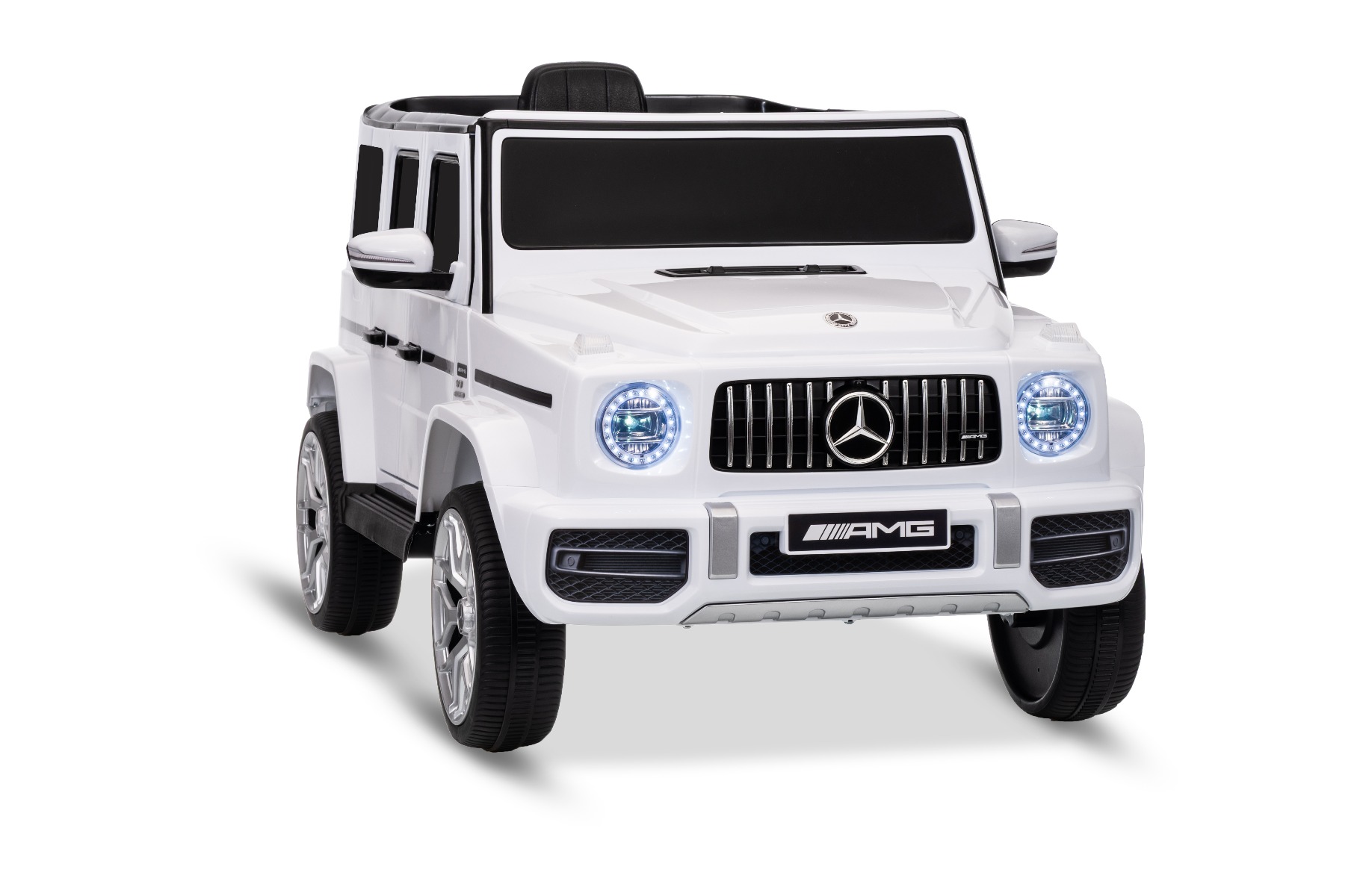 MERCEDES G63 12V Cu 1 loc CEL MAI RECENT MODEL CU LICENȚĂ DIN CLASA G DOAR LA NOI! NOU: baterie cu litiu Mașinuță electrică de jucărie Mercedes G cu licență, roți EVA moi și silențioase și telecomandă de 2,4 GHz. Mașinuța este foarte drăguță, este concepută pentru suprafețe denivelate și netede, dar poate face față și zonelor cu pietriș și iarbă. Designul corespunde cu cel al mașinuțe Mercedes G original. Mașina este echipată cu efecte sonore și luminoase. Frumoasa mașină, cu accesorii cromate originale, arată realist și va încânta atât tinerii, cât și pe fanii mai mari ai acestui brand. Există opțiunea de a alege între 3 viteze de deplasare direct de pe telecomandă. De asemenea, include o telecomandă avansată cu control parental complet. Părintele are control deplin asupra mașinii, deoarece telecomanda suprascrie comenzile manuale. Indicator digital al stării bateriei și al nivelului de încărcare, pentru siguranța copilului există o centură de siguranță reglabilă pe scaun. Baterie litiu (10,8 V 3,1 AH): Durată lungă de viață – Pot rezista la mai multe cicluri de încărcare. Capacitate mare – Sunt ușoare și puternice. Încărcare rapidă – Se încarcă rapid și se descarcă lent. Accelerare lină – După apăsarea pedalei de accelerație, mașina pornește, iar pornirea este controlată electronic pentru a fi lină datorită accelerației line integrate. Datorită acestui fapt, nu există smucituri neplăcute la pornire atunci când se apasă pedala. Pachetul include un adaptor cu indicator, care nu supraîncarcă bateria + o baterie reîncărcabilă cu litiu. Caracteristici MP3 player Telecomandă Volan multifunctional Suspensii Uși care se deschid Centură de siguranță Bluetooth Selector viteză Buton pornire Baterie litiu-ion Caracteristici speciale Specificații tehnice / Dimensiunile produsului Putere 12V – 2 motoare de 30W, tracțiune pe ambele roți spate. Pornire lină a motorului – fără smucituri la accelerare Telecomandă de 2,4 GHz cu asociere cu o anumită mașină – nu mai există interferențe de semnal de la alte mașini FRÂNĂ DE URGENȚĂ DE LA DISTANȚĂ – dezactivează toate funcțiile de conducere ale mașinii. Apăsarea din nou a frânei de urgență reactivează funcțiile de conducere. Această inovație oferă control parental maxim asupra vehiculului și utilizare în siguranță. Posibilitatea de a regla viteza de conducere de pe telecomandă – telecomanda inovatoare permite părinților să regleze viteza de conducere chiar și în timp ce conduc. Indicator de viteză setat pe telecomandă Indicator de stare a bateriei Asocierea directă a telecomenzii cu o anumită mașină – vă permite să utilizați un număr nelimitat de mașini identice într-un singur spațiu, fără interferențe reciproce de semnal. (Pentru asociere, trebuie să porniți mașina, să apăsați butonul de asociere timp de 4-6 secunde și conexiunea a fost stabilită) Mișcare înainte/înapoi Timp de încărcare min. 4-6 ore Durata de viață a bateriei: 3,5-4,5 ore Player MP3 cu conexiune Bluetooth – posibilitatea conectării unui dispozitiv extern. Deplasare la: Viteză mică 3km/h, Vitează mare 5 km/h Capacitate maximă de încărcare / Sarcină. Max 30 kg Pedală de accelerație și frână Suspensii față/spate Mașina este potrivită pentru un copil. Un scaun lat Baterie: Litiu 10.8V3.1AH Greutate mașină: 16 kg Dimensiuni: 106 x 62 x 54 cm Dimensiuni pachet: 102 x 59 x 31 cm