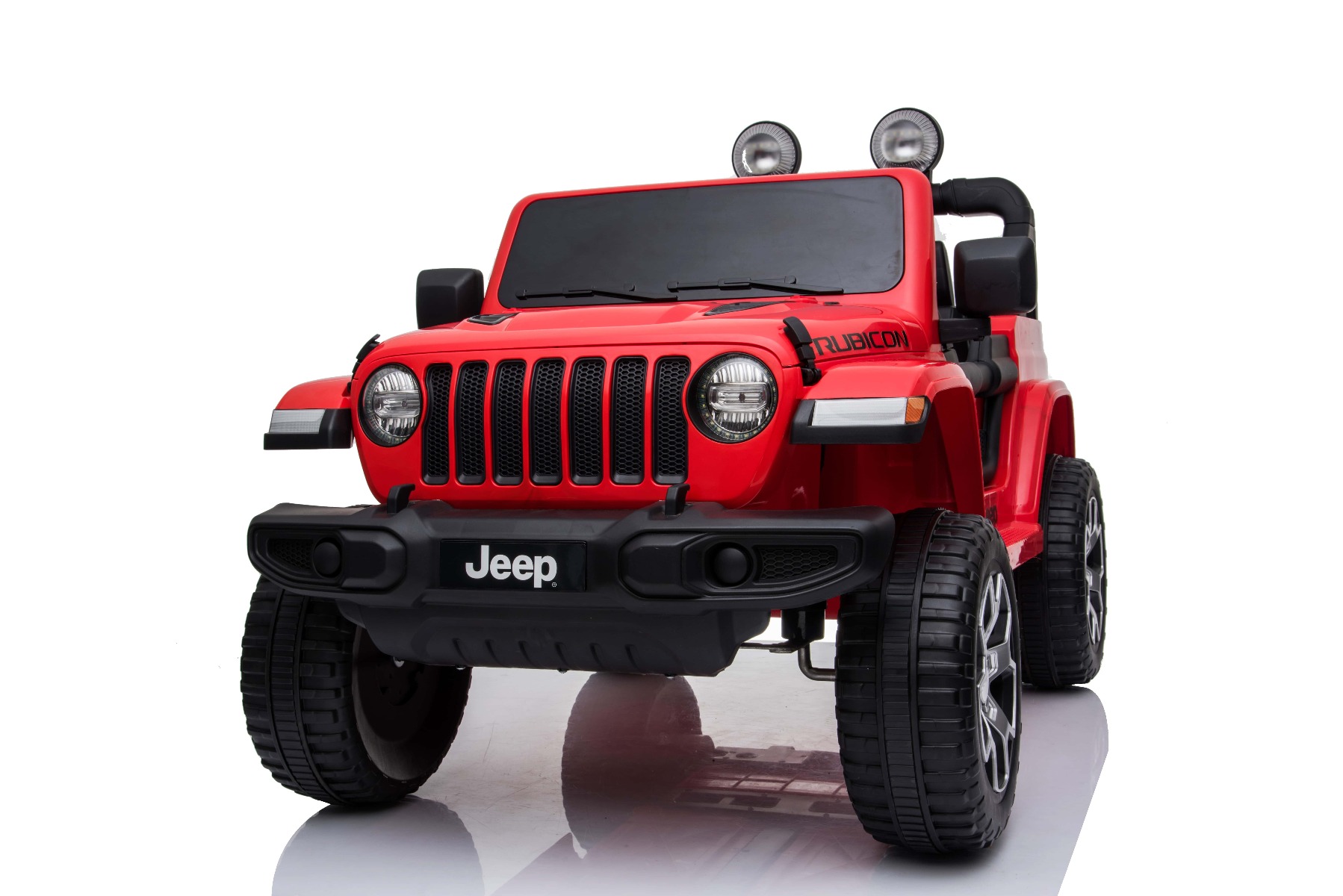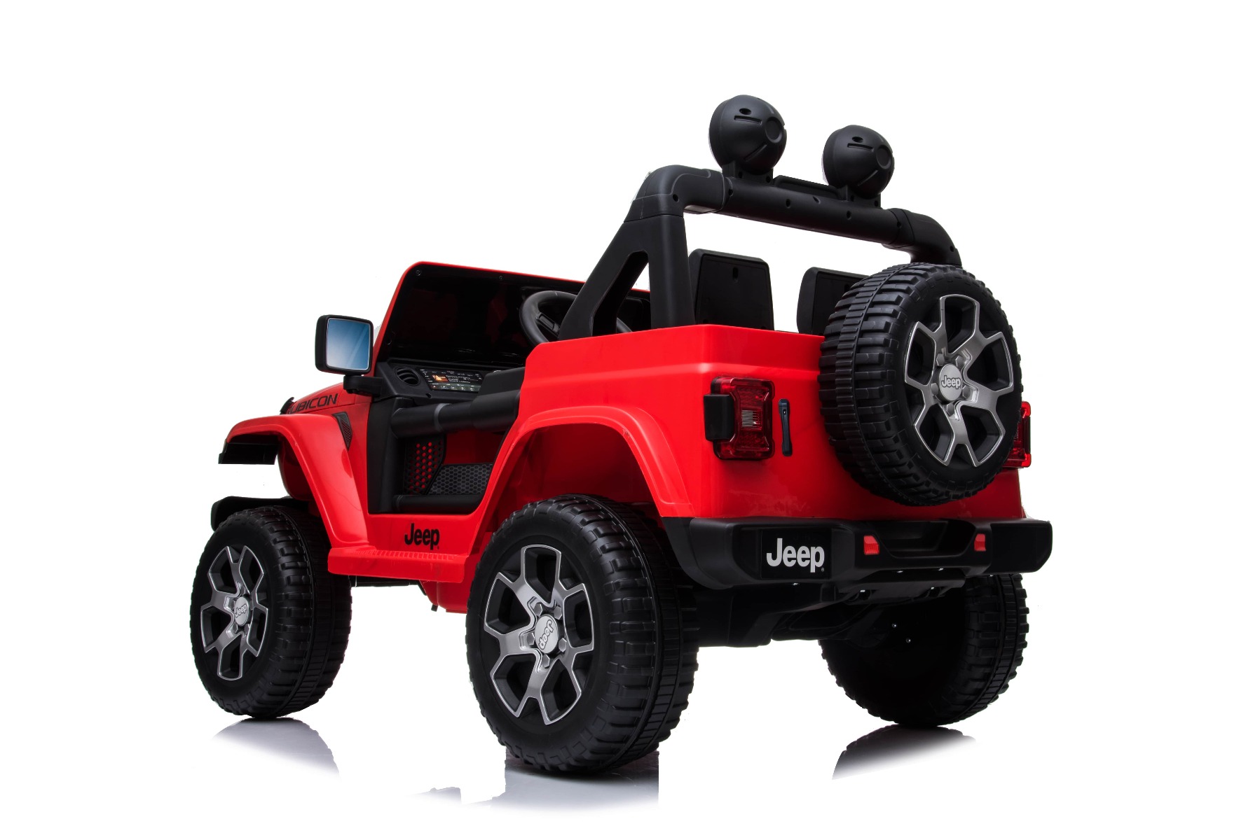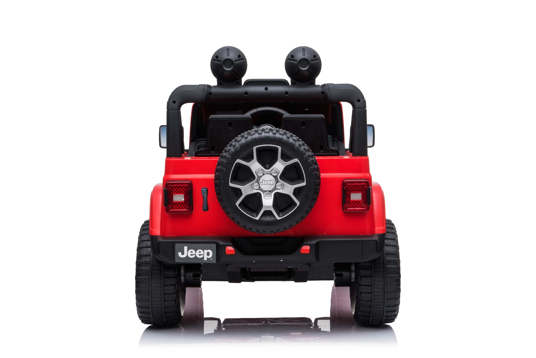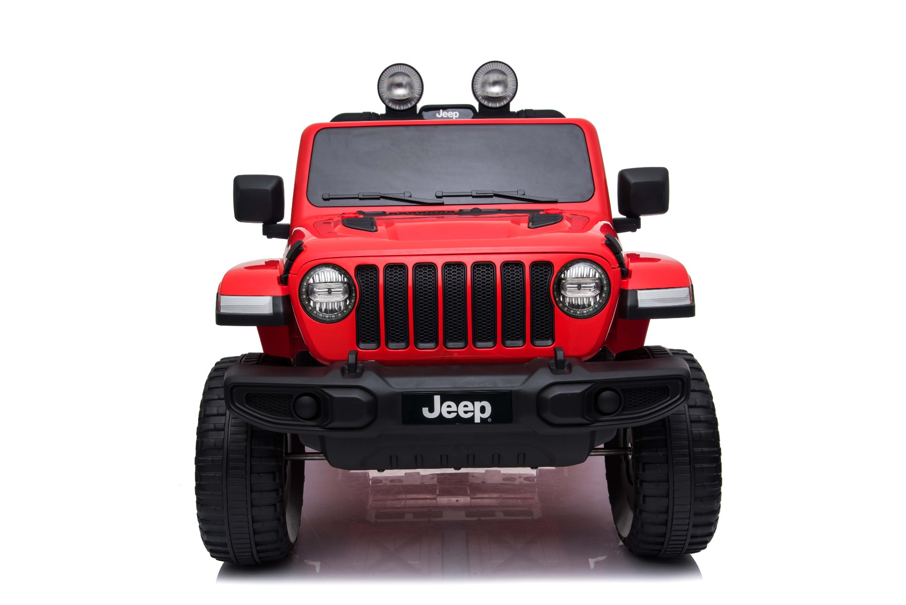Mașinuță electrică pentru copii JEEP Wrangler, Roșu, scaun din piele, Radio cu intrare Bluetooth și USB, unitate 4×4, baterie cu litiu, roți EVA, suspensii spate, telecomandă de 2,4 GHz, comutator funcție telecomandă/ pedală, licențiat