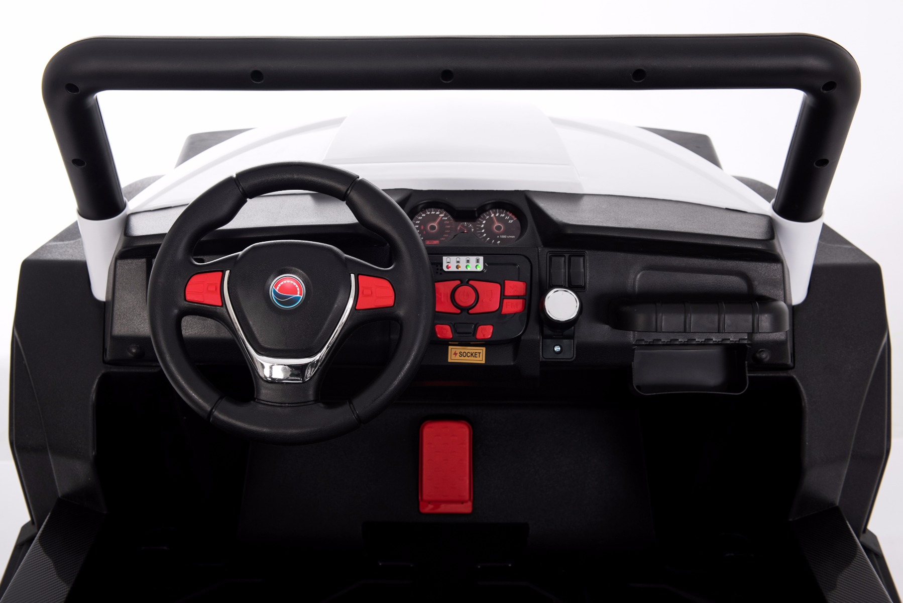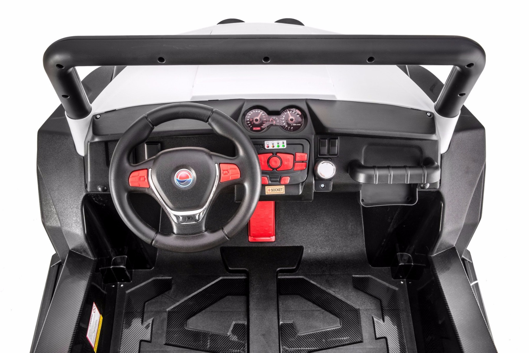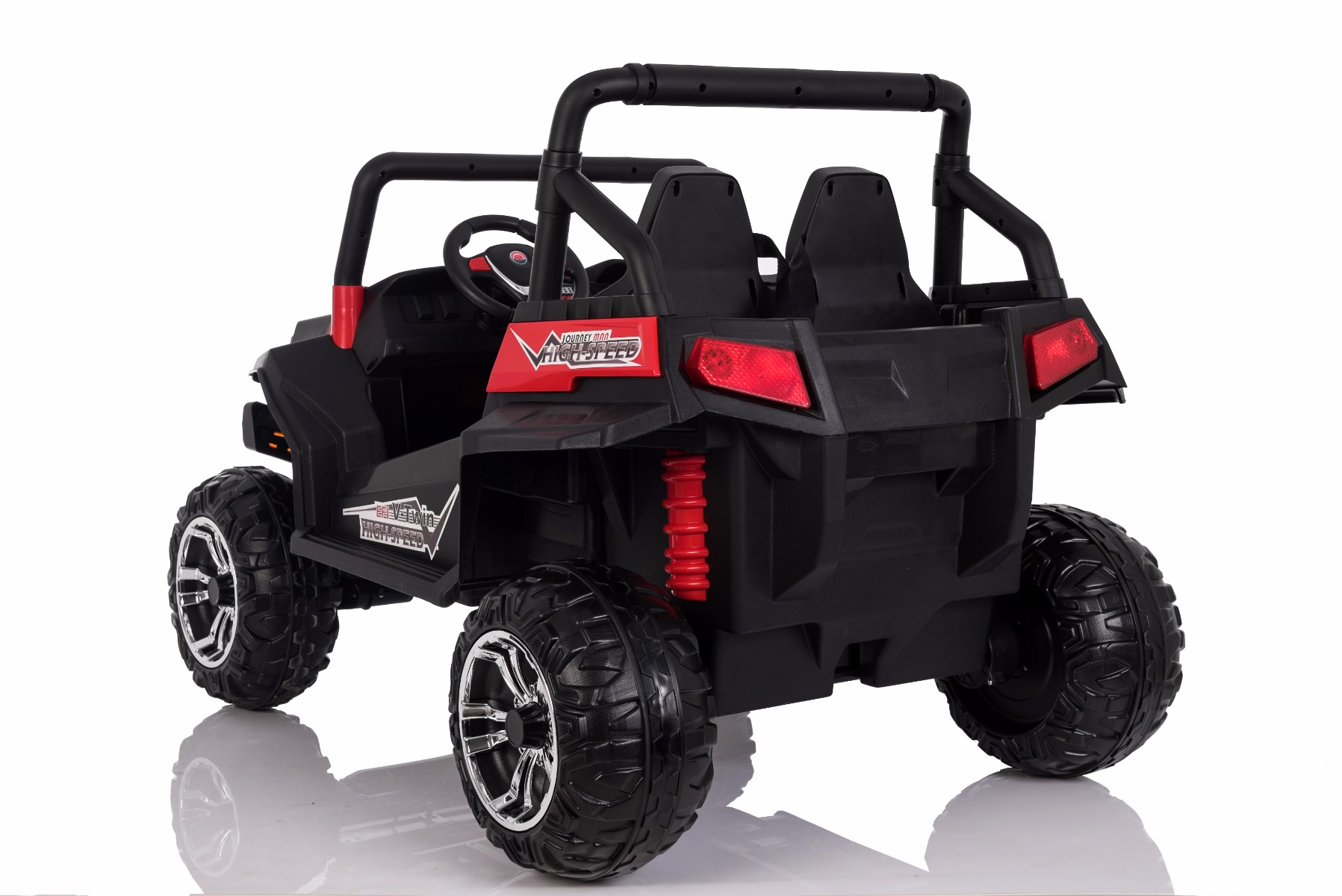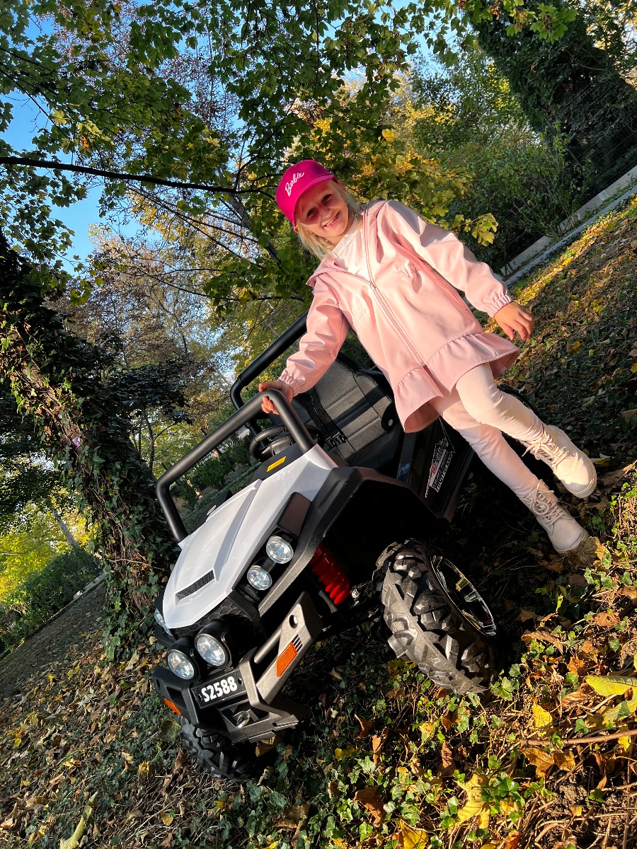 • Noua telecomandă 2.4Ghz – fără interferențe, control complet asupra mașinii, oprire de urgență • Roți mari și ușoare EVA și scaune din piele dublă • 4x motoare ce acționează fiecare roată, 4 viteze înainte și 1 înapoi, datorită acestor lucruri este potrivită pentru condusul off-road. • Dimensiuni: 130 cm, 94 cm, 83 cm