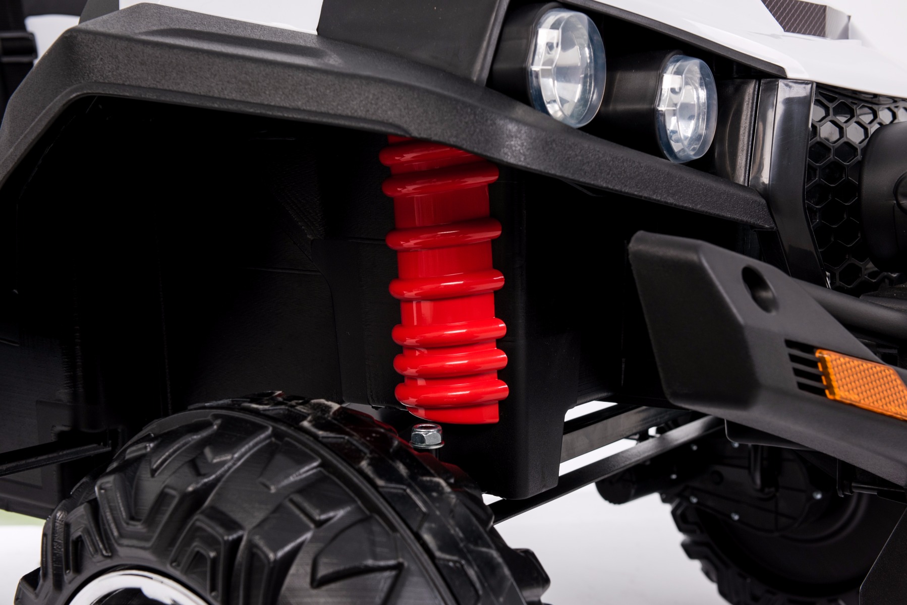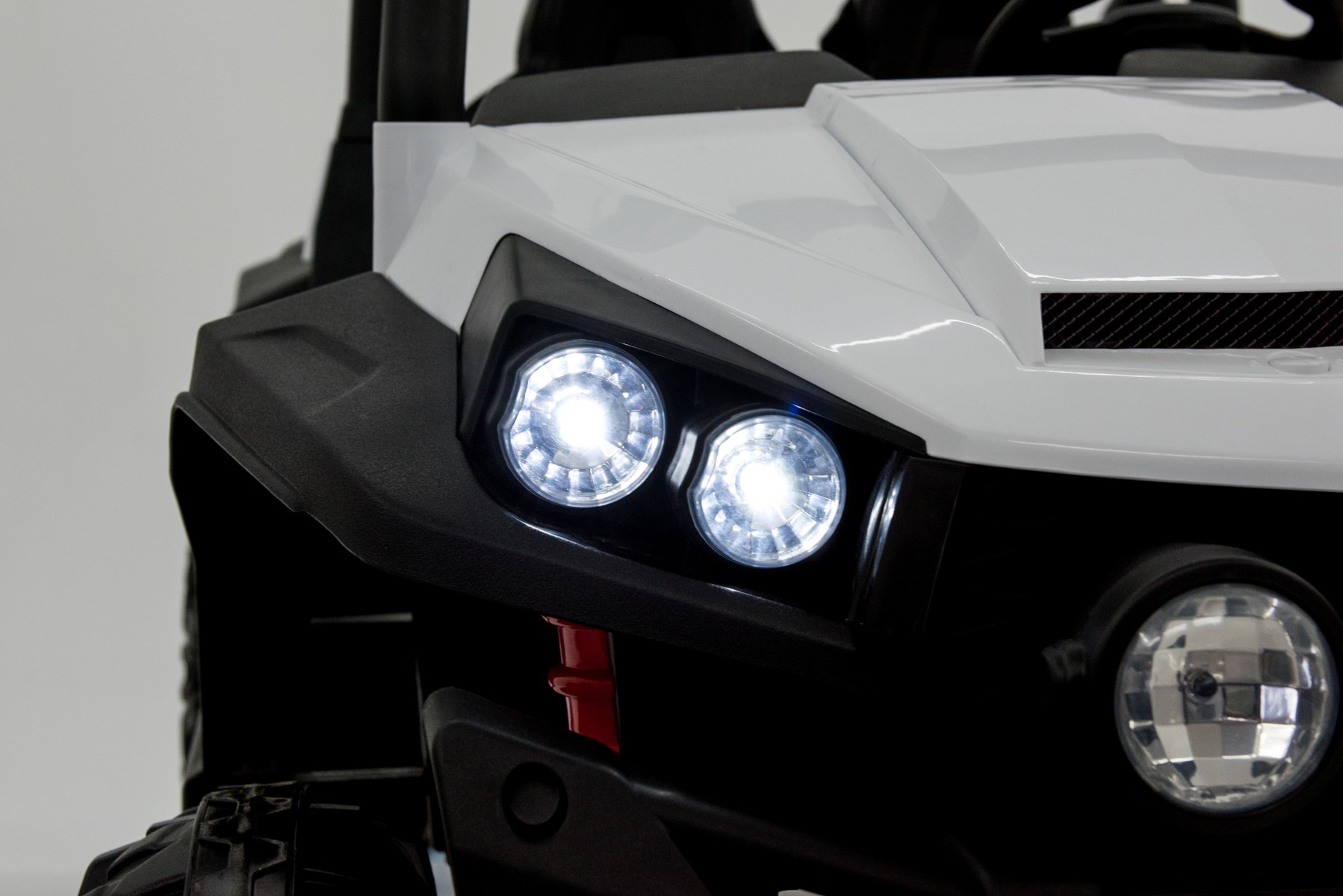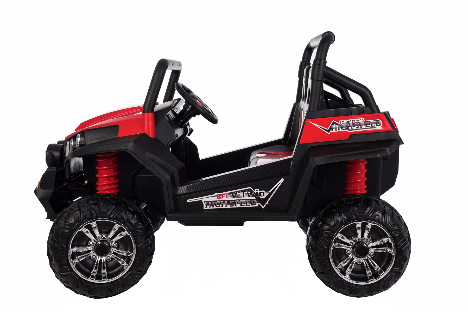 • Noua telecomandă 2.4Ghz – fără interferențe, control complet asupra mașinii, oprire de urgență • Roți mari și ușoare EVA și scaune din piele dublă • 4x motoare ce acționează fiecare roată, 4 viteze înainte și 1 înapoi, datorită acestor lucruri este potrivită pentru condusul off-road. • Dimensiuni: 130 cm, 94 cm, 83 cm