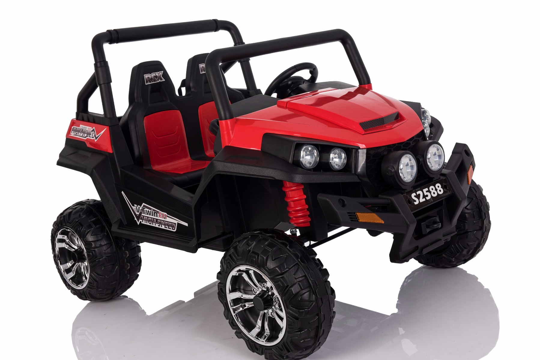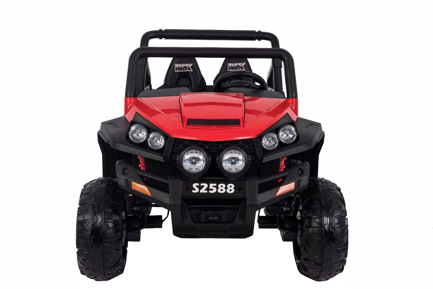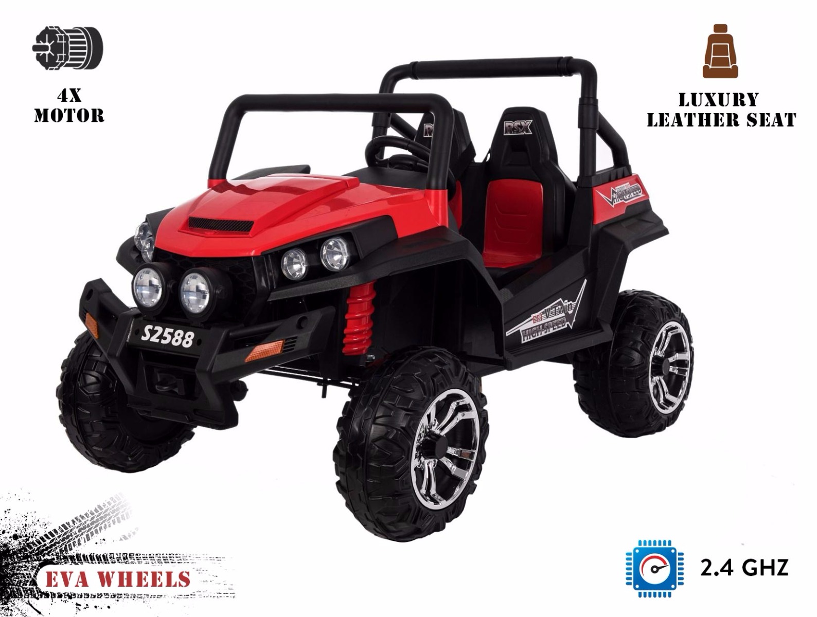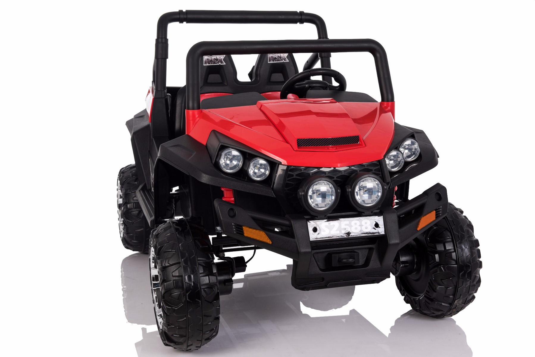 Mașinuță electrică pentru copii RSX tip ATV, Roșie-2.4Ghz, 4x Motoare, telecomandă, 2 scaune din piele, roți ușoare Eva, Radio FM, Bluetooth